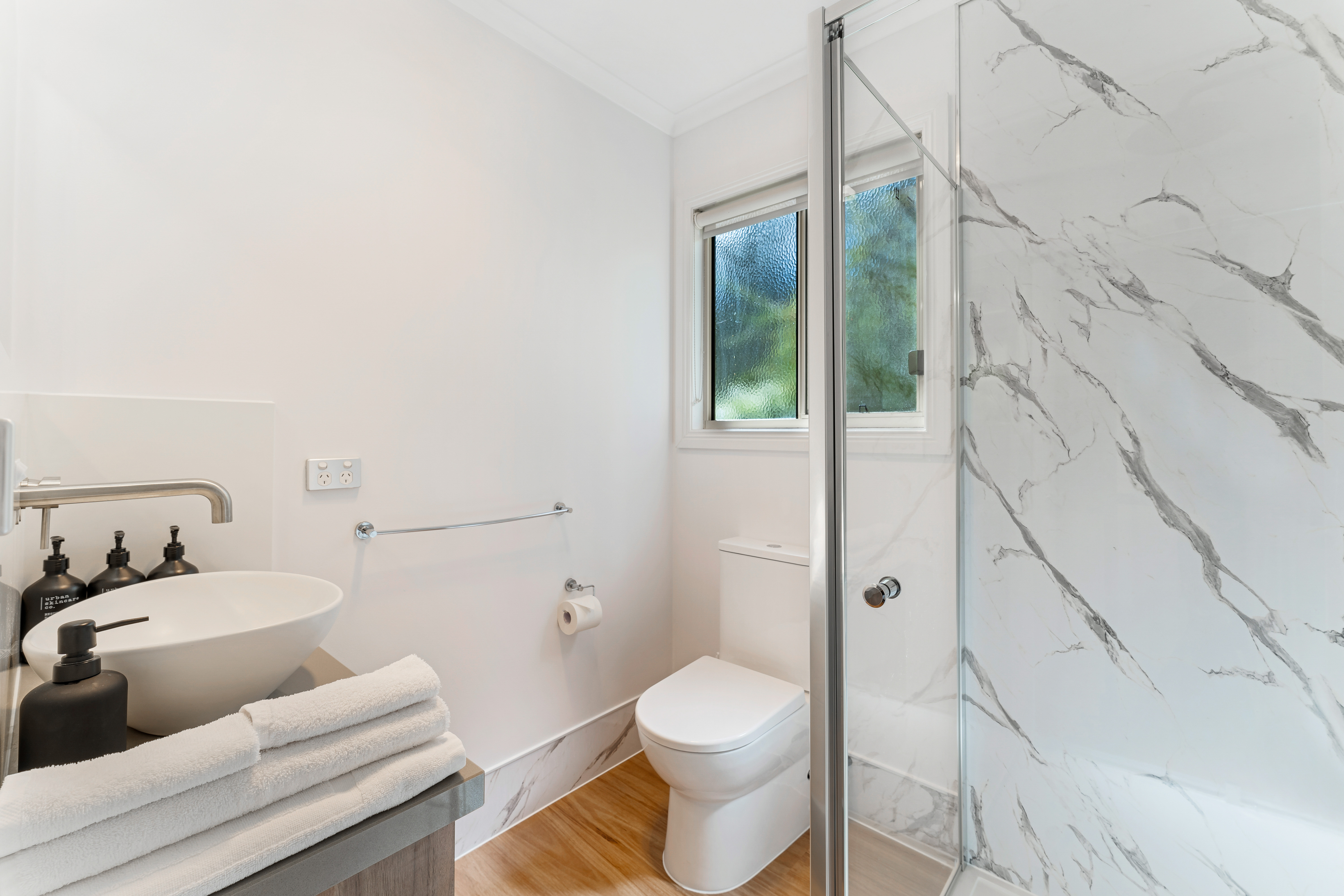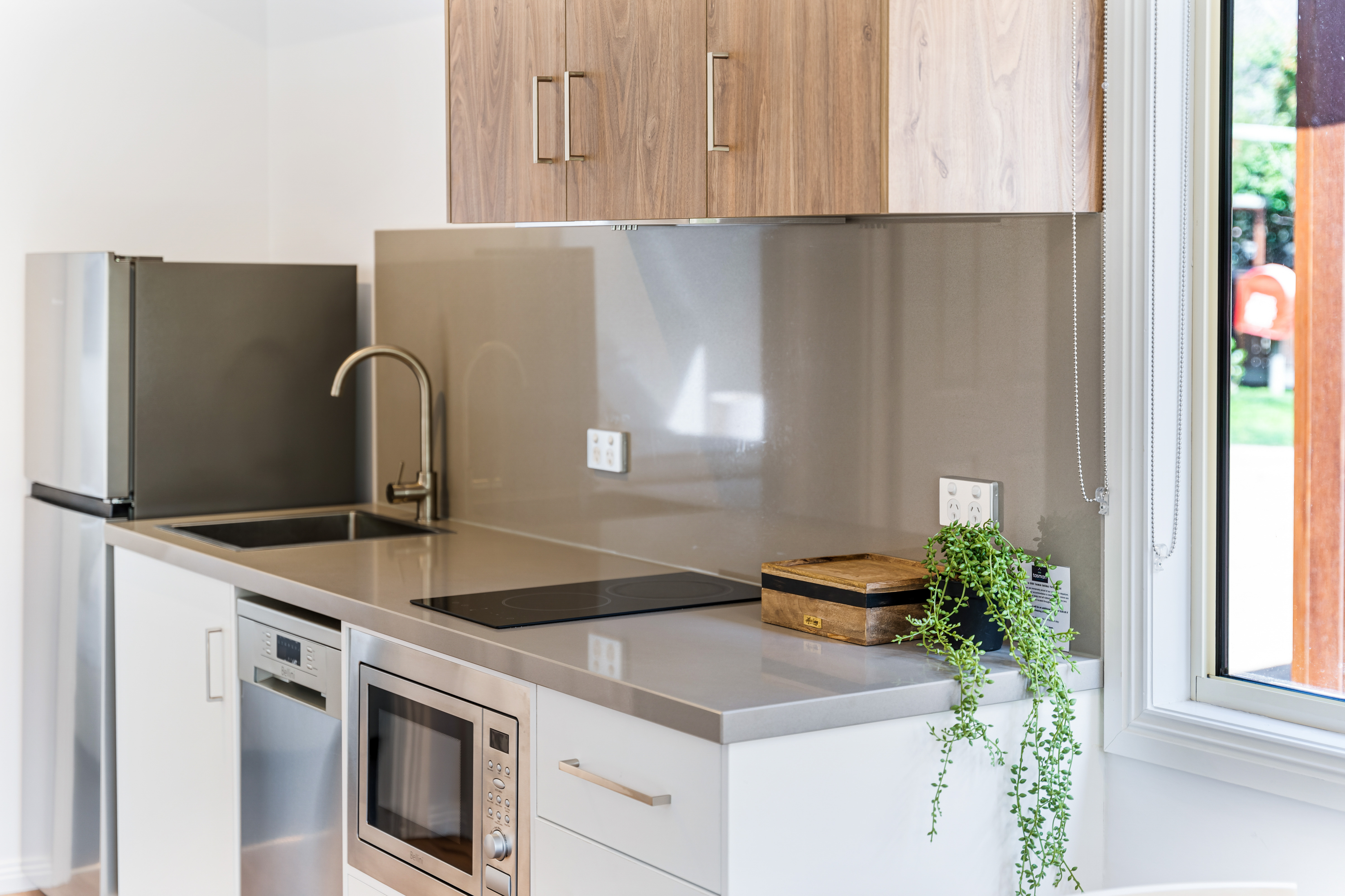 Newly renovated, climate controlled all year round, our Villa offers an open plan living area with lounge, dining and a fully equipped kitchen with stone benchtop. The kitchen includes a fridge/freezer, dishwasher, confection microwave oven and electric cooktop. The main bedroom features a queen-sized bed, and the bathroom includes a shower and toilet.