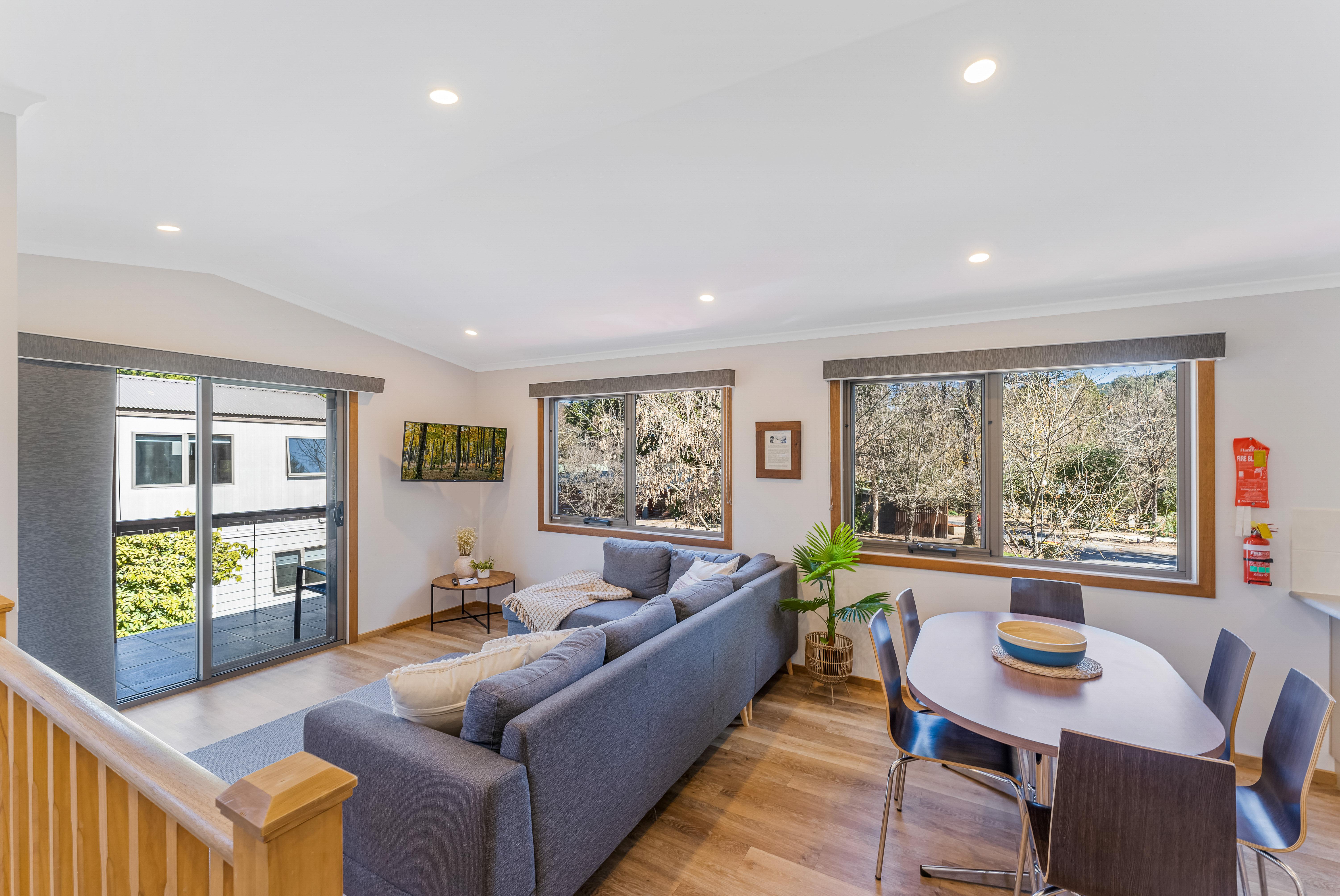 Our Two Storey Mountain View Spa Townhouses are located within our seasonally landscaped gardens and feature magnificent mountain views. Fully self-contained, our Townhouses provide spacious, contemporary holiday living. From romantic getaways, through to family and group get-togethers they provide the perfect base for you to explore beautiful Bright and the surrounds. Relax on the upstairs deck after a long day and enjoy the spectacular views the mountains have to offer.