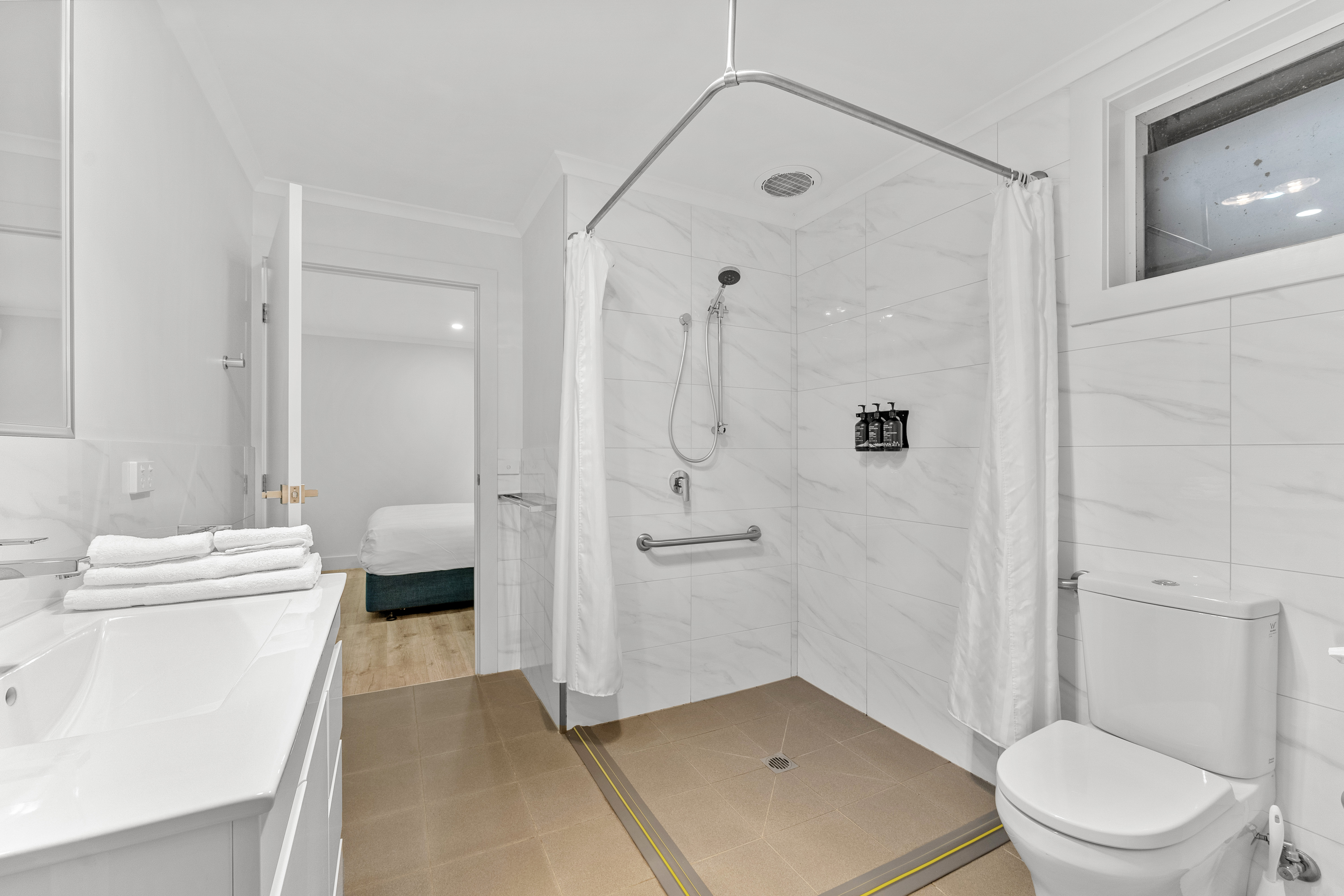 Climate controlled all year round, our Unit offers an open plan space featuring living area with lounge, dining and a fully equipped kitchen. The kitchen includes a fridge/freezer, microwave and gas cooktop with oven, plus a toaster, kettle and complimentary tea, coffee and sugar. The main bedroom features a queen-sized bed, with a second queen sized bed tucked around the corner in a cosy alcove. For added convenience there is also a roll away bed. Both sleeping areas are connected by the spacious, well-appointed bathroom with shower and toilet, which can also accommodate guests who require accessible facilities. Please note this villa is located down the front of the park, street access.