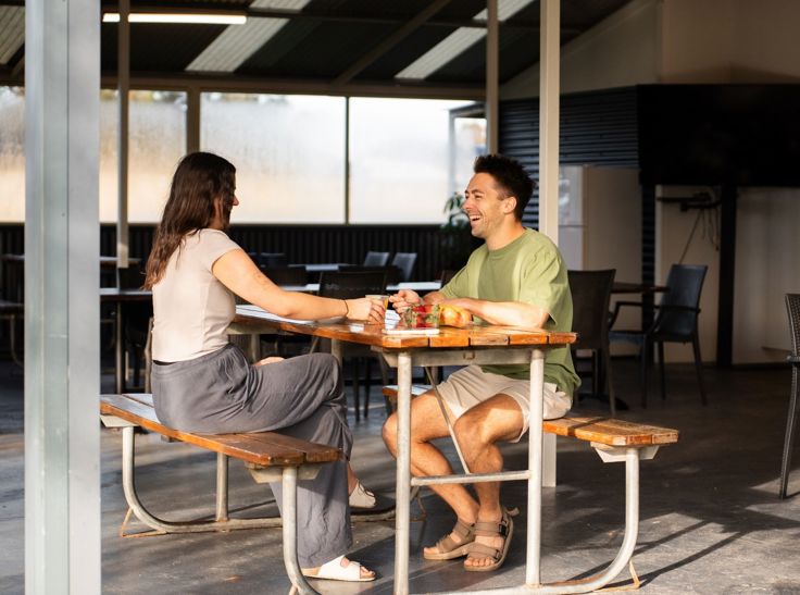 Our modern enclosed camp kitchen has everything you need including free gas BBQs, microwave, fridge, oven with cook top, toaster, kettle and dishwashing facilities - we even provide the detergent!