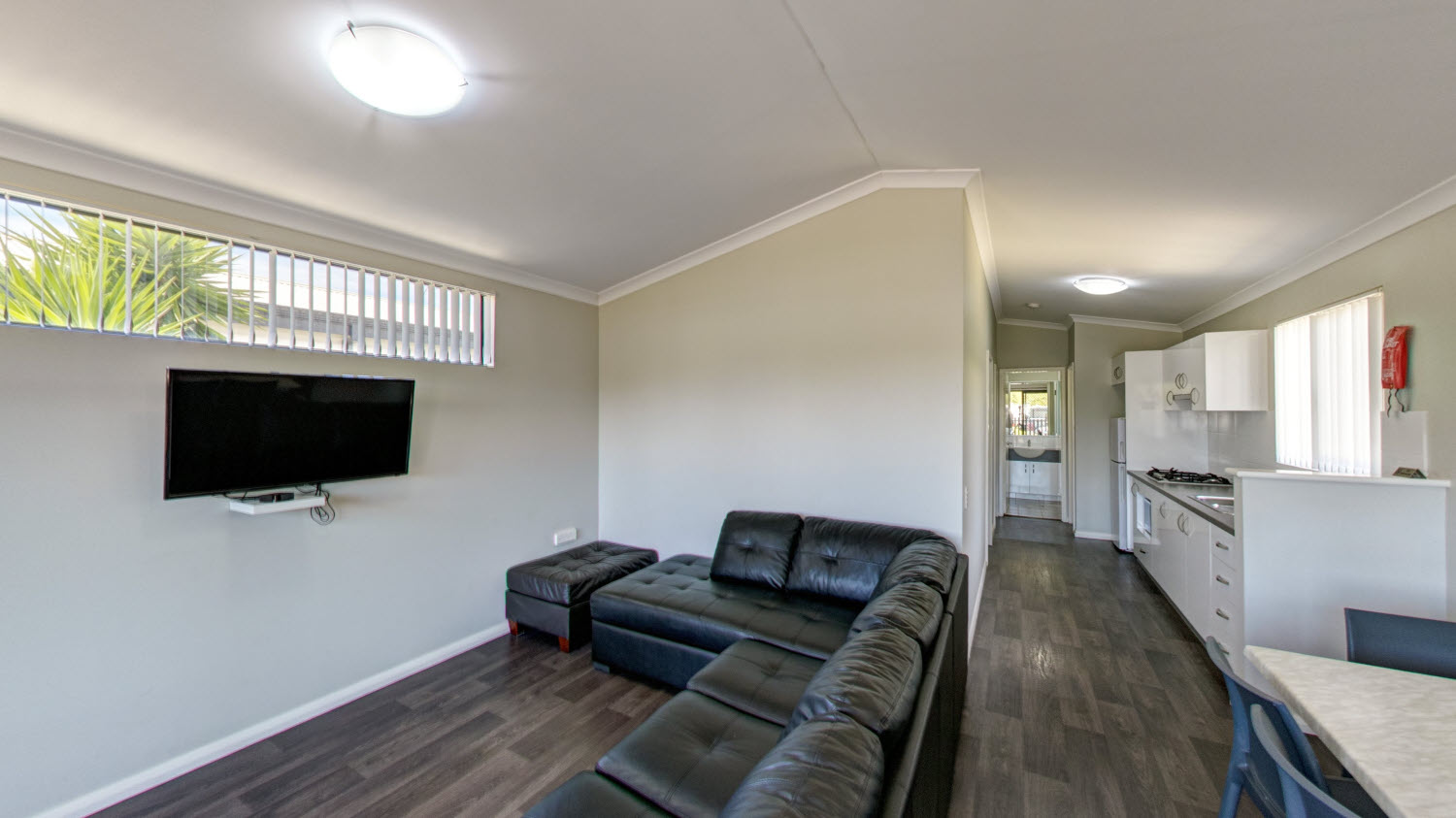 BIG4 Bunbury Riverside Holiday Park is ideally located for family holidays, travellers that are passing through or for those looking to explore Bunbury and the wonderful surrounding areas in more detail. Our pet friendly Bunbury caravan park is located opposite the Collie River on the Eaton Foreshore, only 8km from the thriving city of Bunbury. Unwind in comfort at our large grassy Powered Sites, perfect for camping or caravanning, or indulge in the luxury of our Deluxe Two Bedroom Cabins after a day of adventure in the stunning South West. There is plenty at BIG4 Bunbury Riverside to keep guests entertained, from fishing and crabbing in the Collie River to taking a dip on one of our two swimming pools, bouncing on the jumping pillow, playing tennis, pickleball, gliding on the flying fox and much more. Book your Bunbury holiday park adventure now! Please note: Our swimming pool is open from September to April.