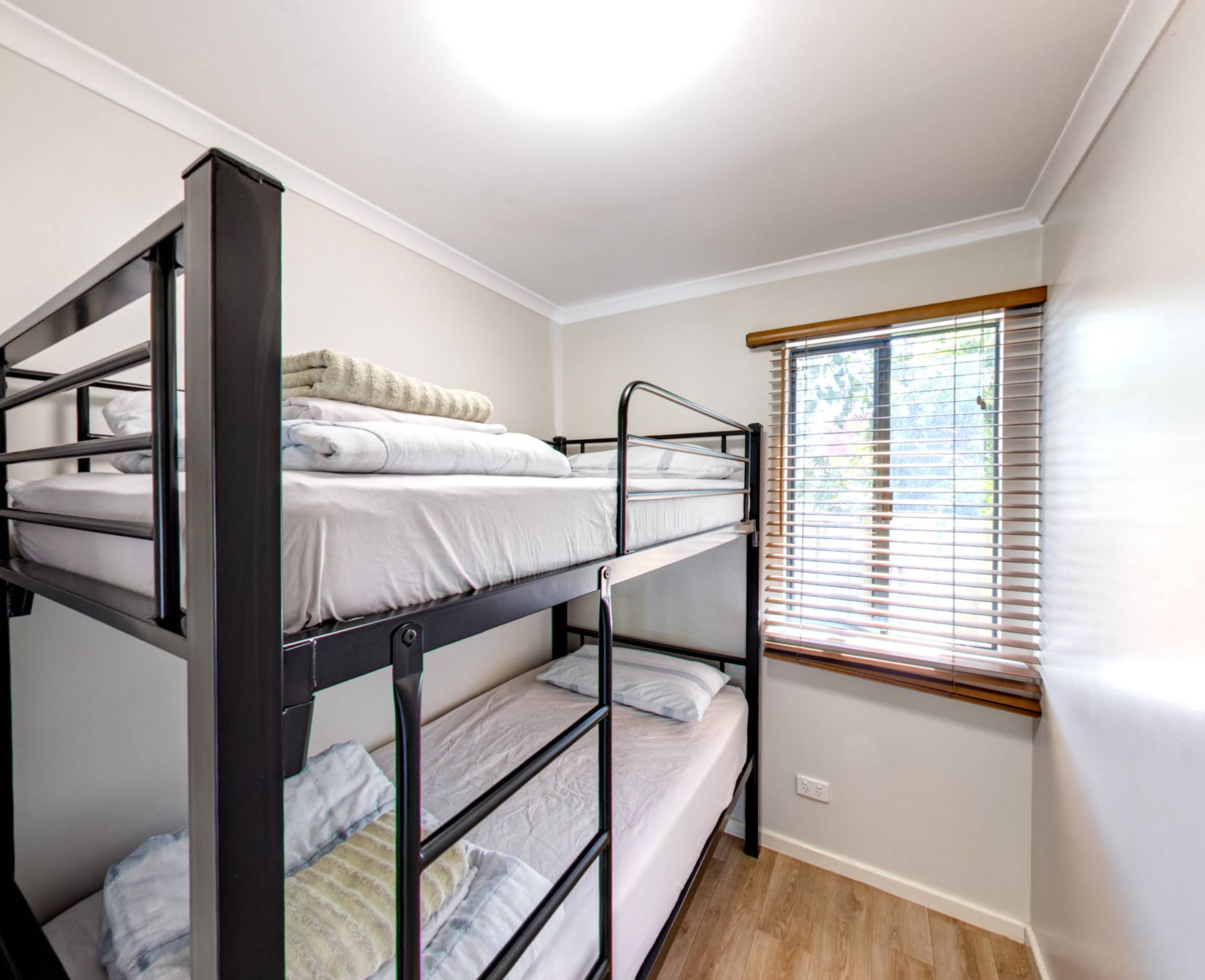 - Two sets of single bunk beds in the second room