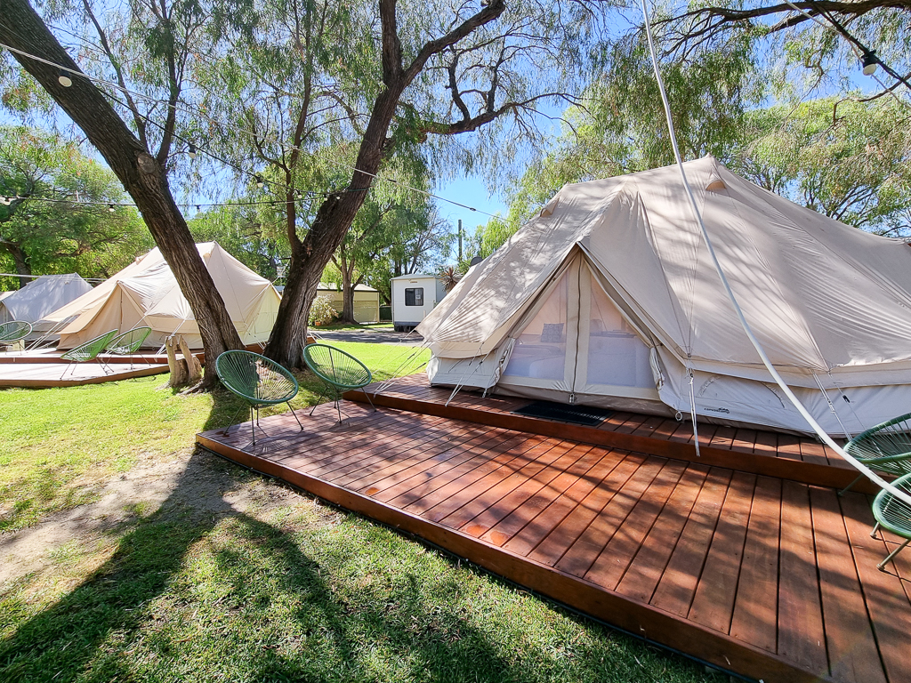 Combine the adventure of sleeping outdoors, with all the comforts of luxury accommodation at Busselton Villas and Glamping Village, just minutes away from the centre of Busselton and just a 3 min walk down to the beautiful Geographe Bay. Our dog friendly glamping accommodation is an intimate getaway under the stars surrounded by peppermint trees, alfresco escapes, all near to the beach!
