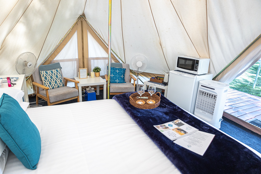 We welcome well behaved, friendly dogs over the age of 12 months in our glamping tents for an extra nightly fee of $35/pet/night. A $200 Pet Bond is required on arrival; this can be in cash or credit card pre-authorisation. This bond is fully refundable provided no damages have occurred, or extra cleaning is required.