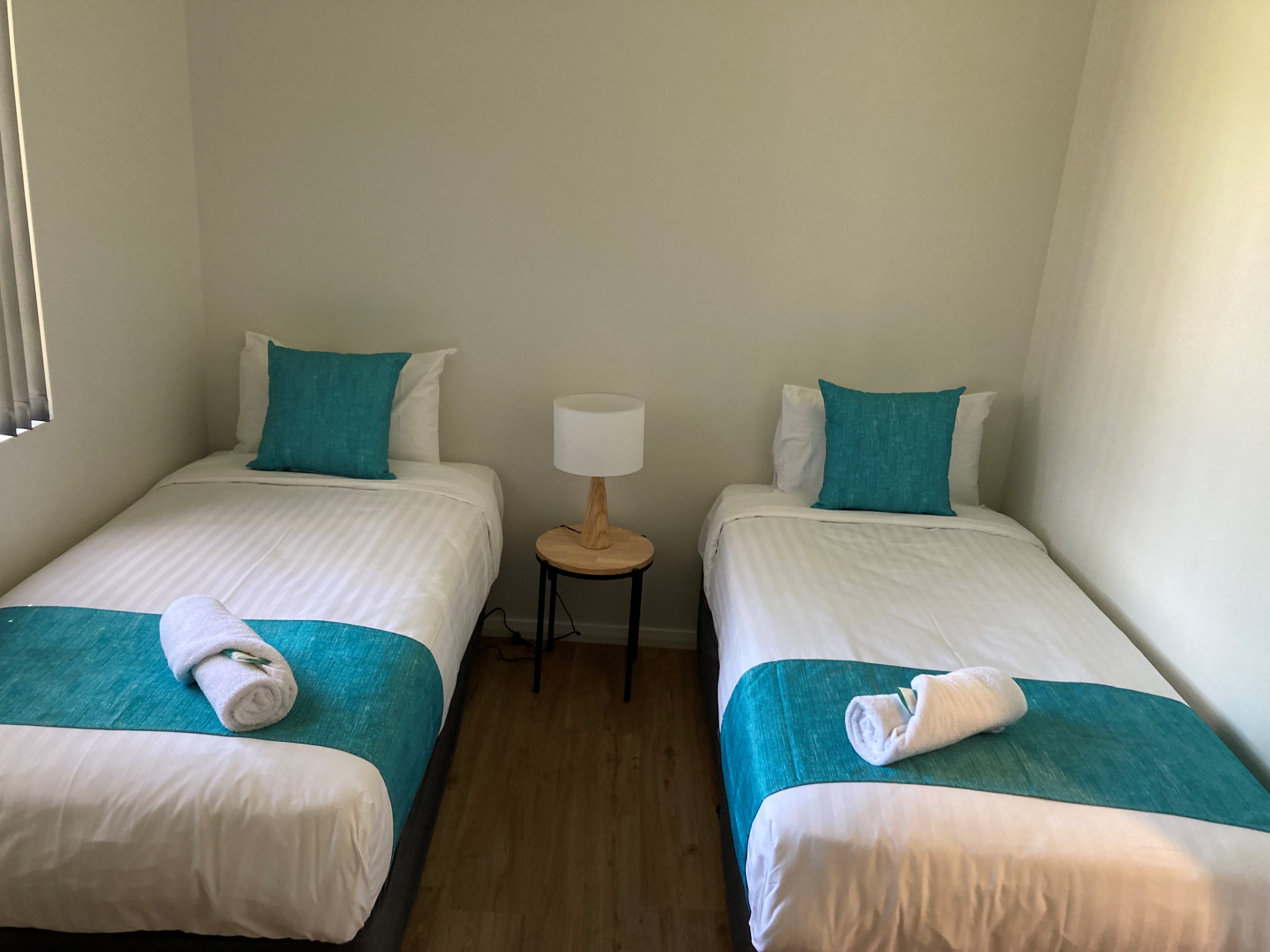 Main bedroom has a queen bed, and the second bedroom has 3 single beds with a trundle bed (on request), sleeping a total of 6 people - All linen is provided.