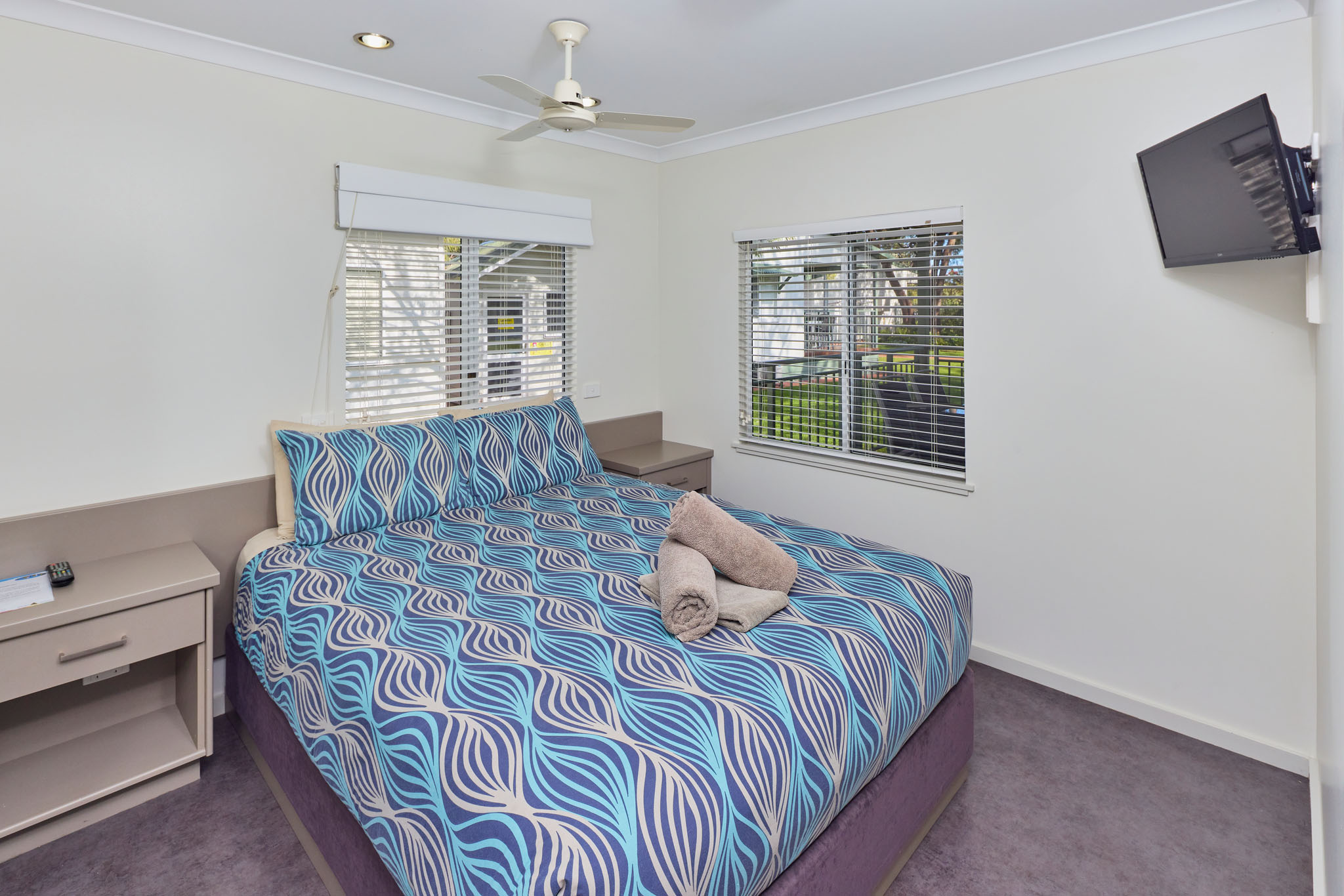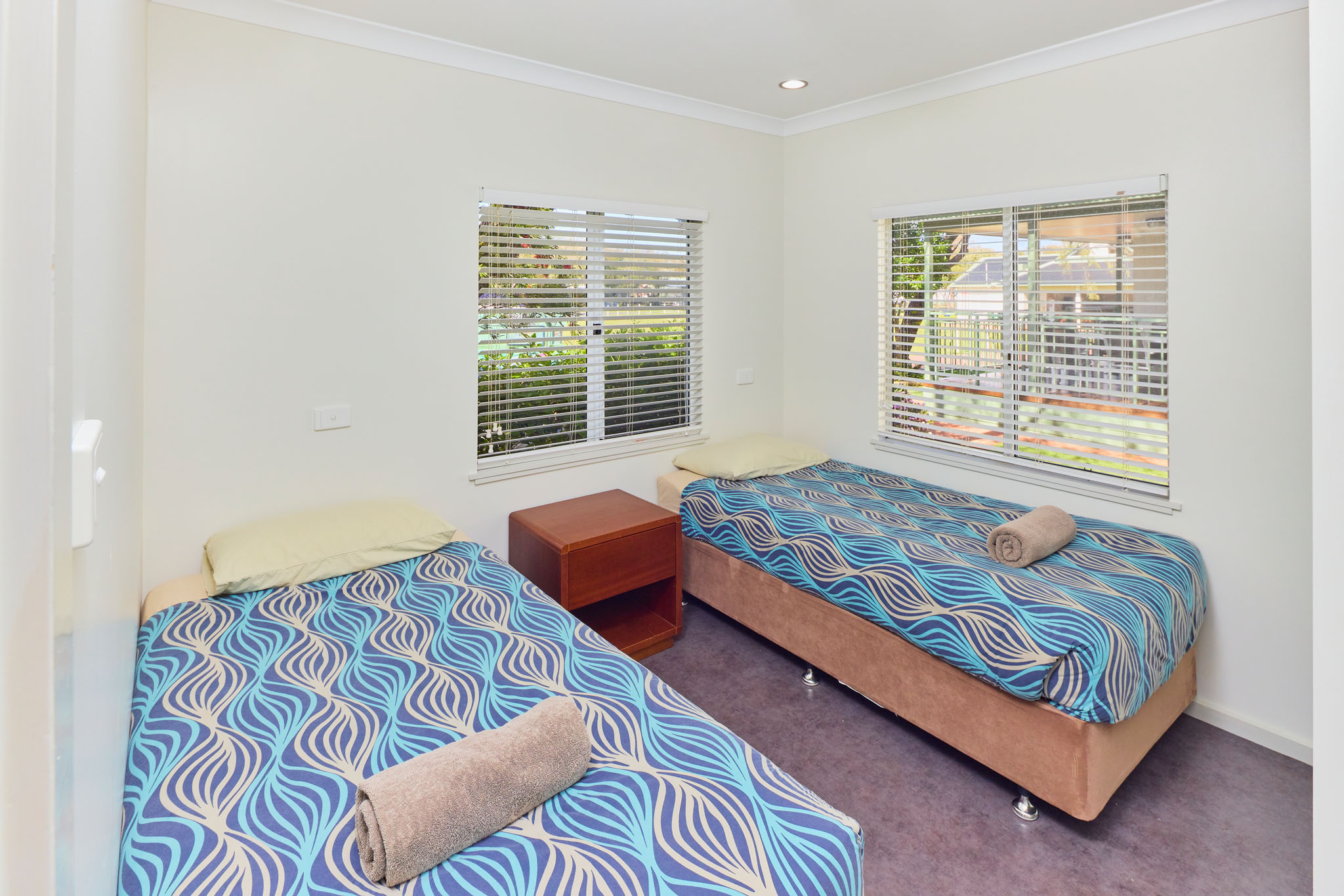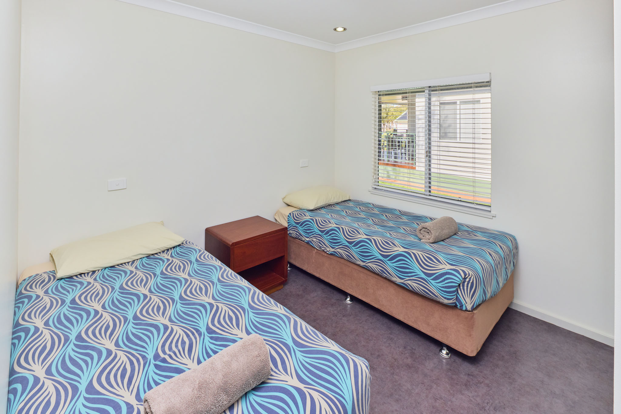 These spacious chalets sleep up to six people. These are all equipped with a queen sized bed and four singles, making them ideal family accommodation.