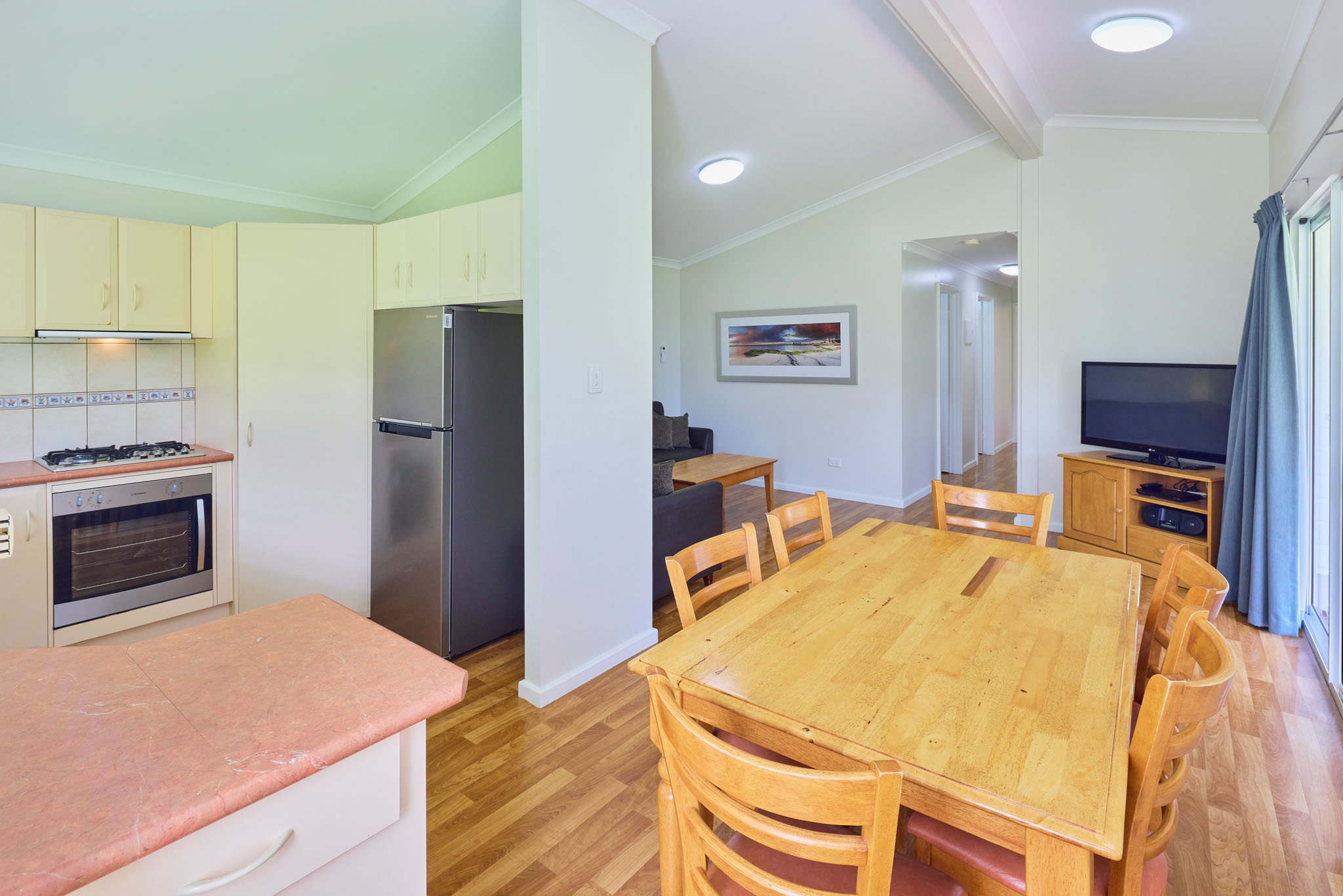 Airconditioned living area, LCD TV, DVD & CD player, full kitchen and laundry facilities and undercover parking, everything you need is under your roof including the corner spa bath that fits two.