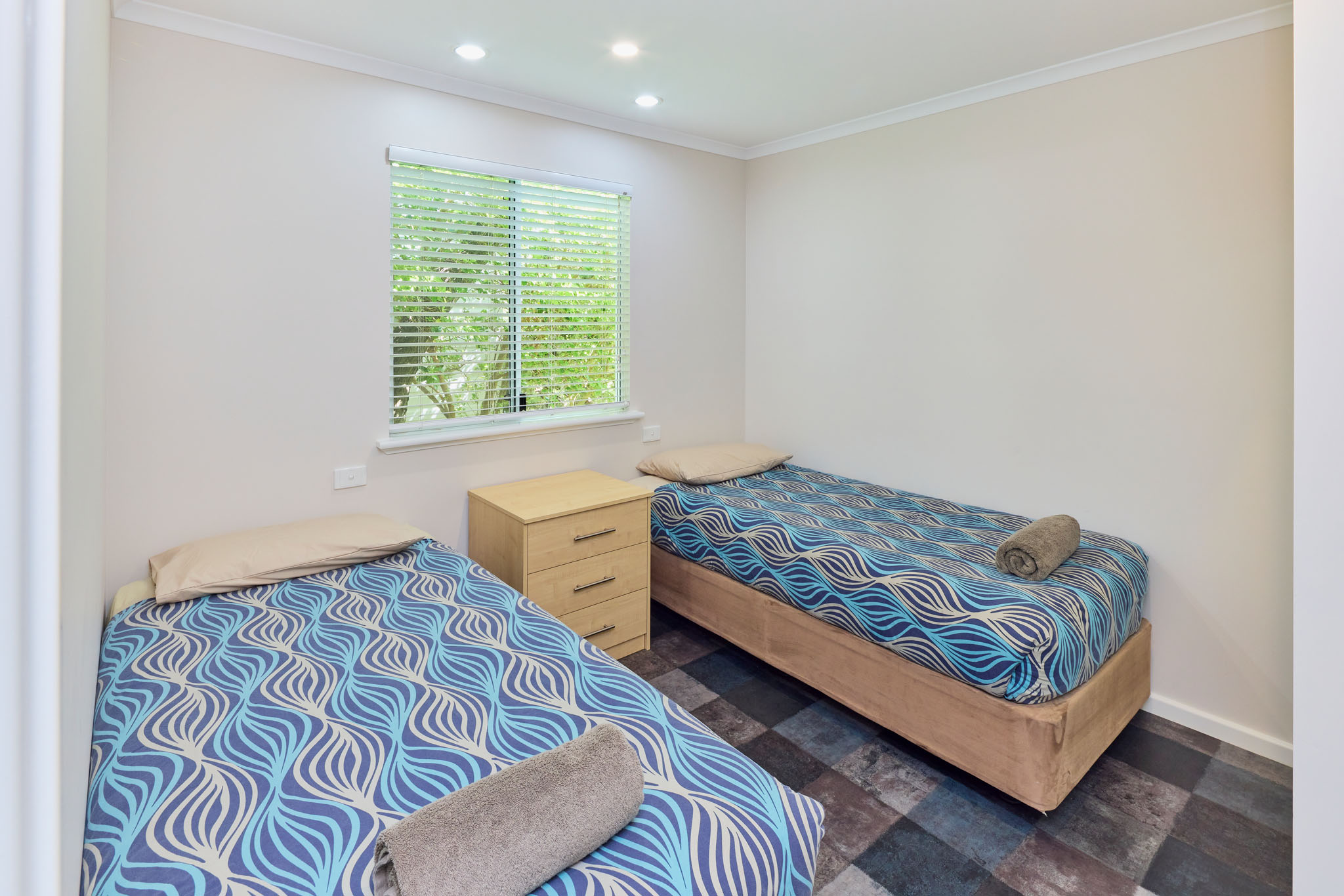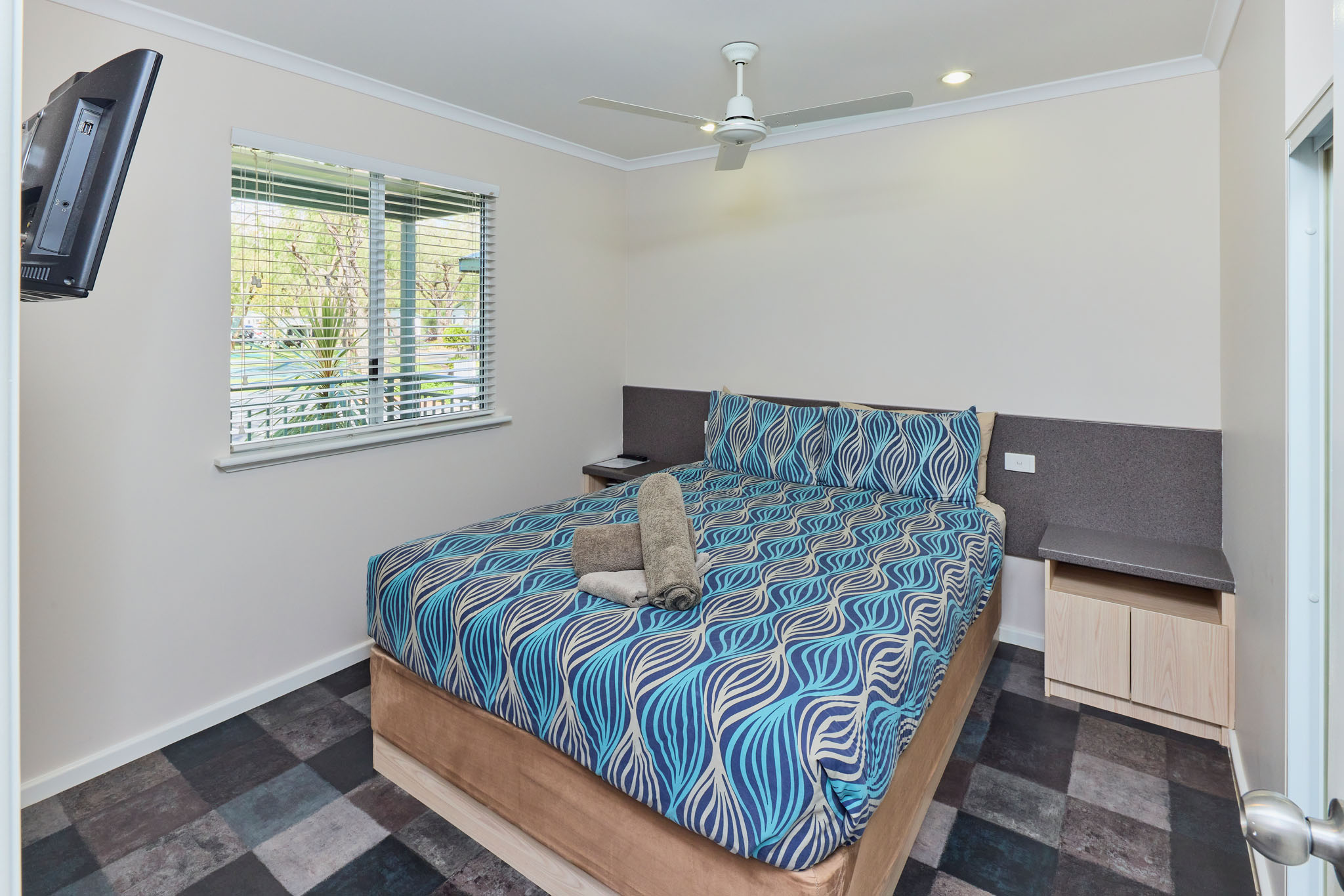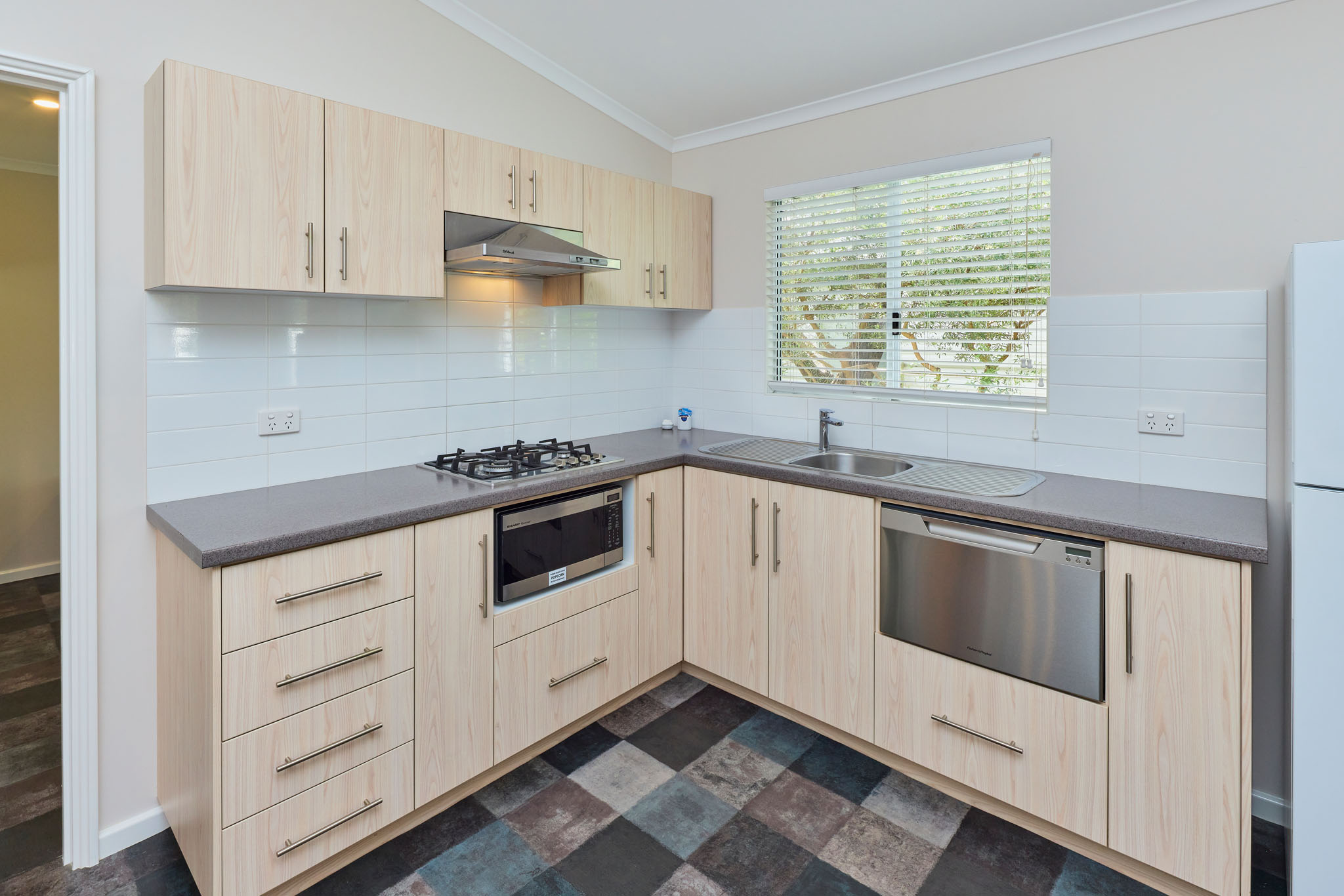 Busselton Family accommodation at its best with a queen bed a set of bunks and three single beds, everyone can stay comfortably in our Three Bedroom Superior Chalet. It’s ideal if you are planning to invite visitors on your holiday.
