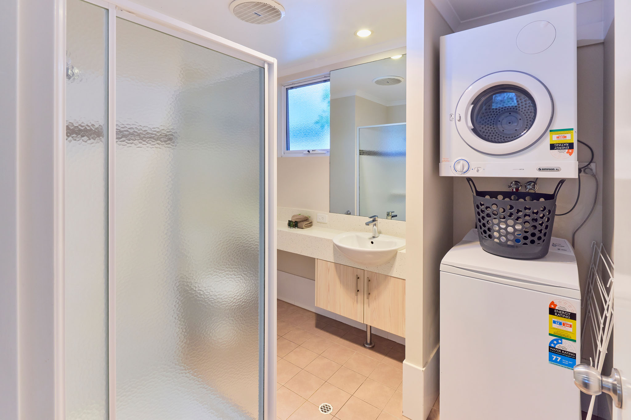 The large open-plan living area allows you the space you need to enjoy your holiday and benefits from having a kitchen including dishwasher, lounge with LCD TV, DVD & CD player & airconditioning, dining and laundry facilities at your fingertips!