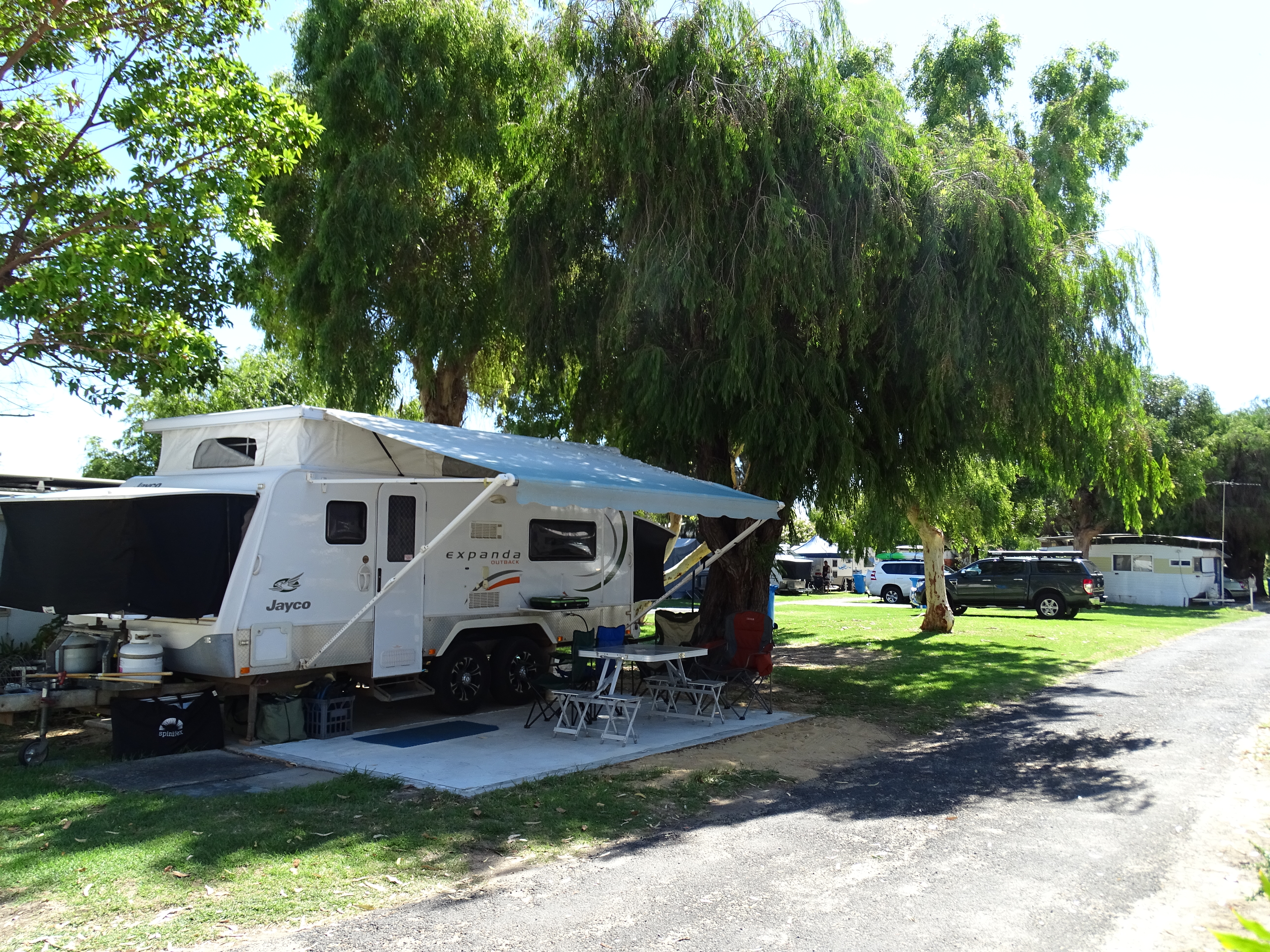 Pet friendly shady powered concrete sites just 500m from the beach! Our concrete powered sites are very spacious and can accommodate any caravan, campervan, bus or motorhome.