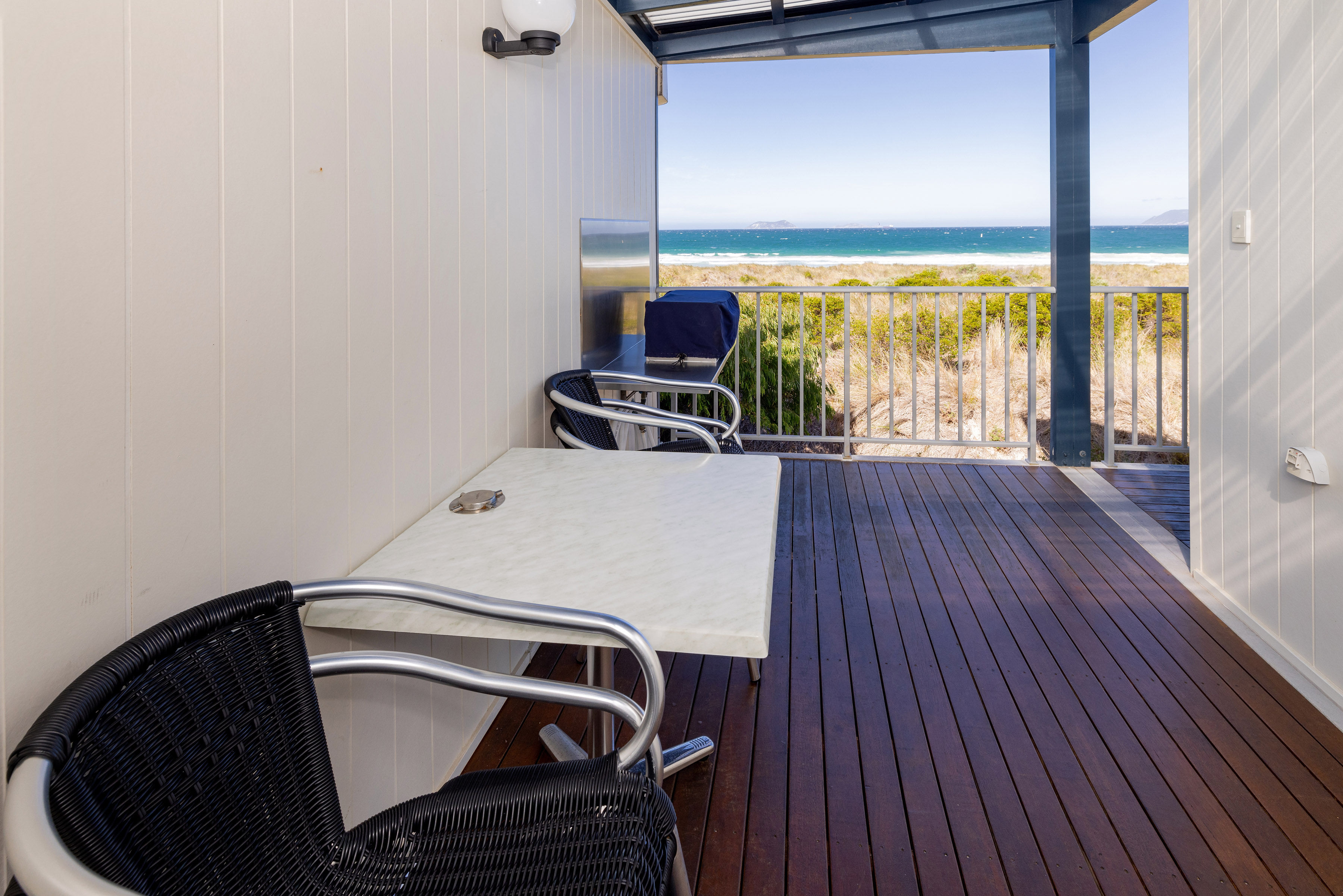 Overlooking the gorgeous Middleton Beach is the upstairs living area which includes a fully self contained kitchen with oven, dishwasher, washing machine and dryer. The living area has two leather lounges, flatscreen TV/DVD, reverse cycle air conditioning, an outdoor balcony with BBQs and amazing views. Ideal for sharing with family or friends.