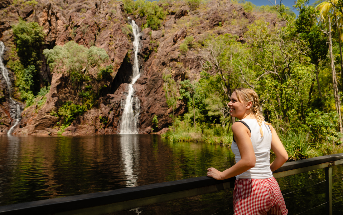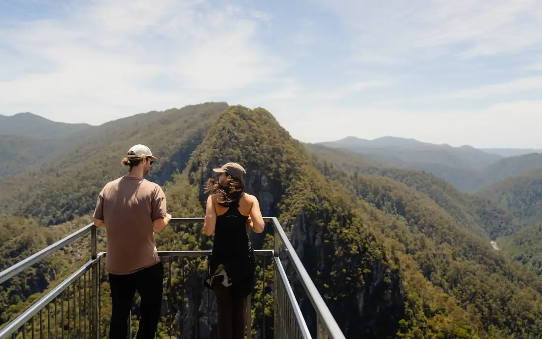 Amber and Nick Tierney, known as Great Aussie Escapes, fell in love with travel after a spontaneous night in a swag during COVID. ‘We wanted to explore our own backyard first and enjoy the hikes and attractions while we still can.’